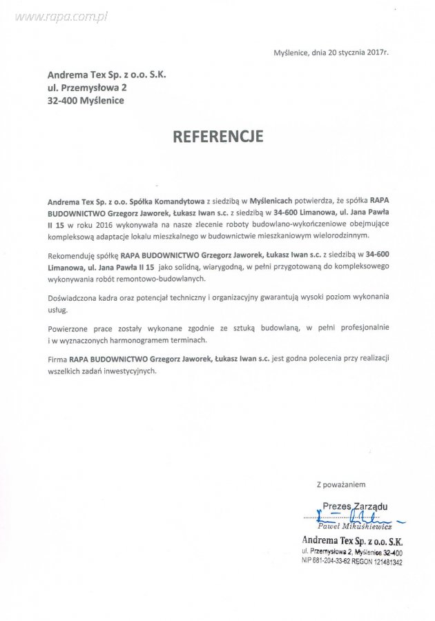 Otrzymane referencje